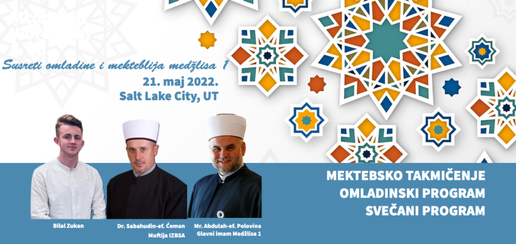 Susreti omladine i mekteblija medžlisa 1 - zapad, održat će se 21. maja 2022. godine u Salt Lake City, Utah…
