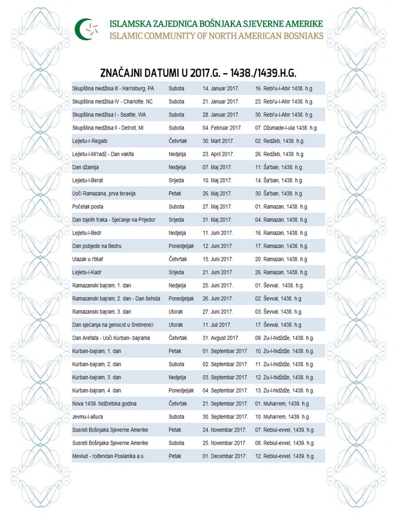 Organizacioni odbor 22. Susreti Bošnjaka Sjeverne Amerike u saradnji sa Upravnim odborom Islamske zajednice Bošnjaka Sjeverne Amerike (ICNAB) odabrao je…