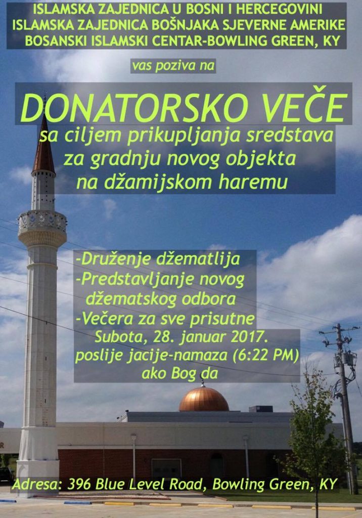 U subotu, 28. januara, 2017. godine, Bosanski Islamski Center Bowling Green iz Kentakija održao je uspješno donatorsko veče na kom…