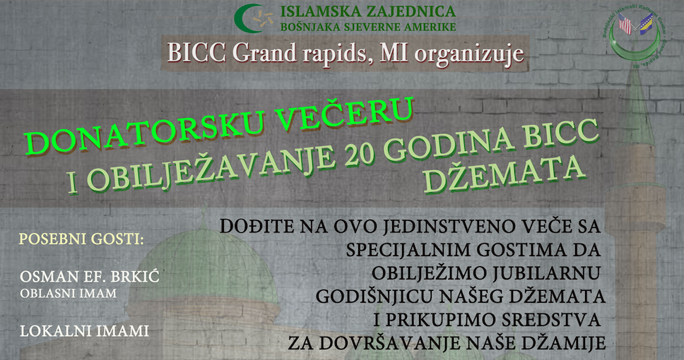 Džemat Bošnjački Islamski Kulturni Centar (BICC) iz Grand Rapids, MI u subotu 18. marta obilježava 20 godina postojanja i uspješnog…