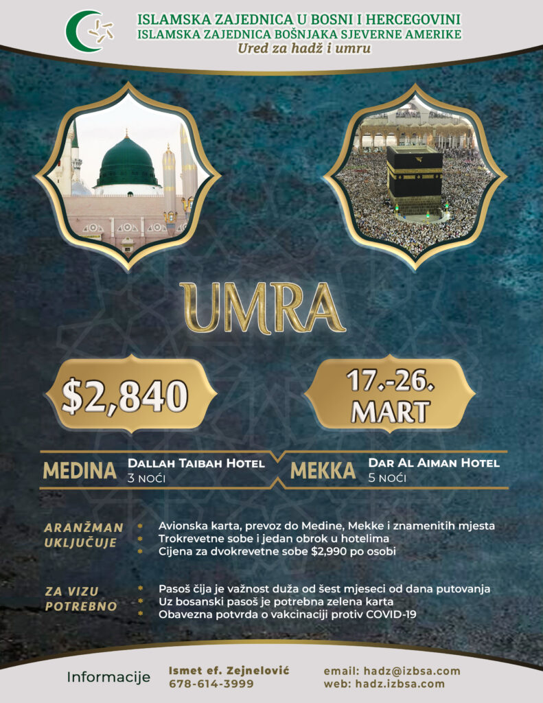 Allahovom voljom, Časna mjesta u Mekki i Medini su otvorena za sve hodočasnike, te Islamska Zajednica Bošnjaka Sjeverne Amerike organizuje odlazak na martovsku umru.