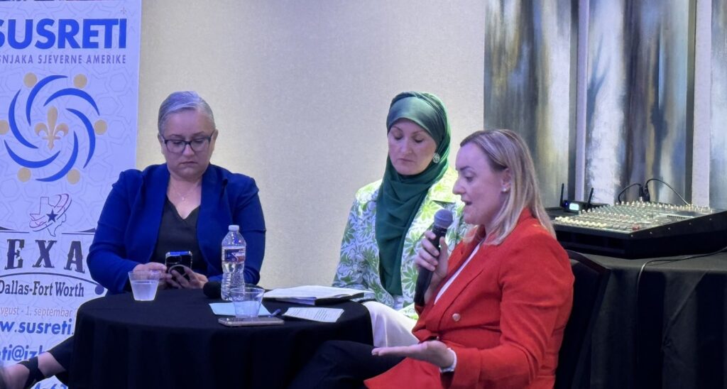 Nakon pauze i ručka nastavljeno je sa panel diskusijom “Izazovi porodice i uloga majke u američkom društvu” koju su vodile i moderirale Amela Redžić, administator odjela za studentsku podršku, Sabina Zolota, voditeljica kliničke strategije i prakse i Selma Porča, izvršna direktorica Kongresa Bošnjaka Sjeverne Amerike.